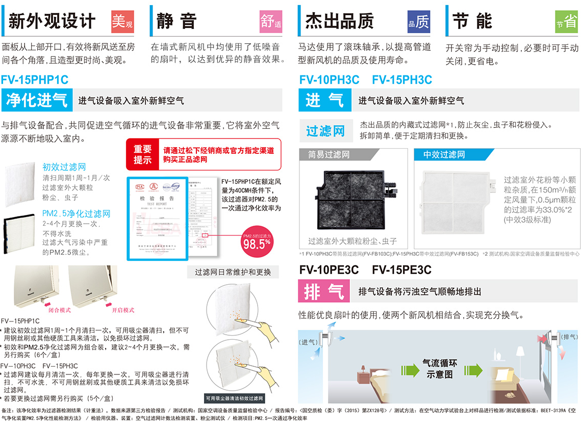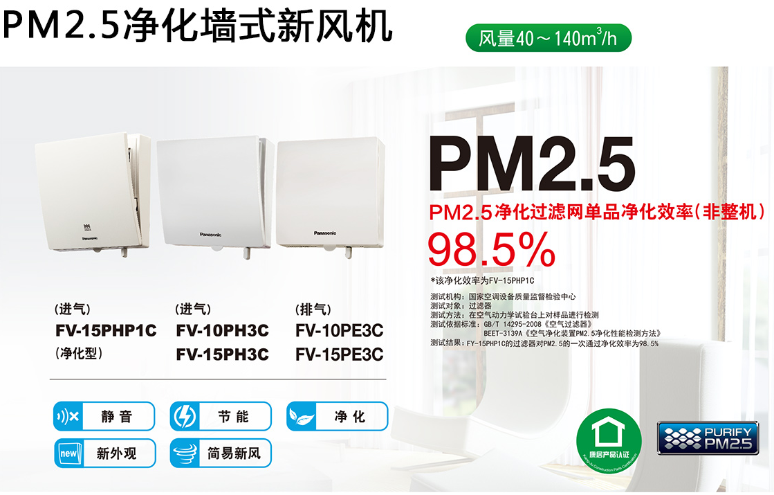 與排氣設備配合,共同促進空氣循環(huán)、PM2.5凈化率高達98.5%、滾珠軸承馬達、手動控制,省電節(jié)能