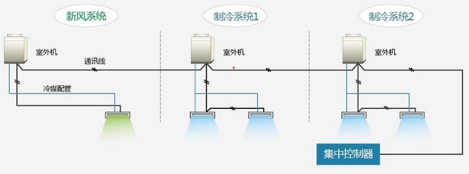 日立新風(fēng)系統(tǒng)與制冷系統(tǒng)可以同時接入一個中央空調(diào)控制系統(tǒng),無需單獨控制,使用靈活便利。