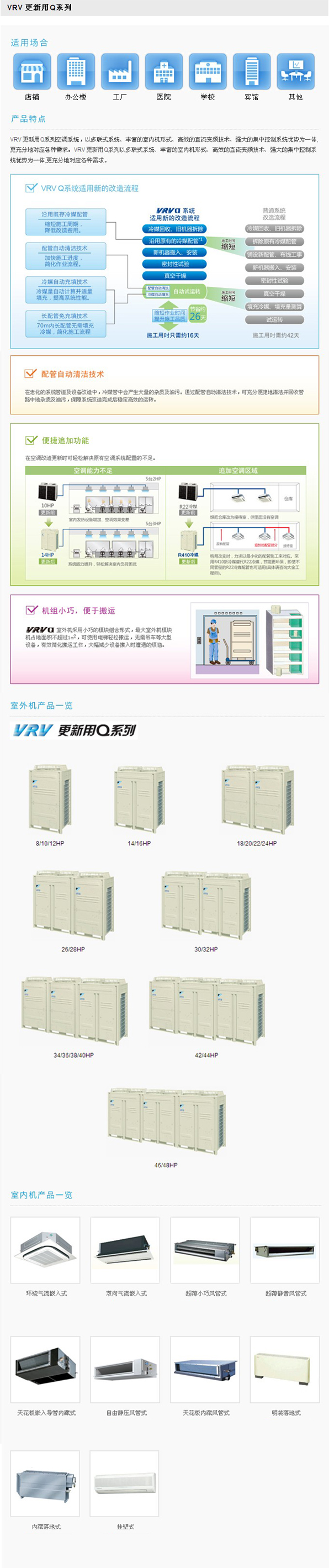 施工周期長、投資成本高、 內裝修補流程繁瑣一直是大樓空調改造過程中面臨的難題。而VRV更新用Q系列是專業(yè),快捷對應各類改造項目的中央空調系統(tǒng)。