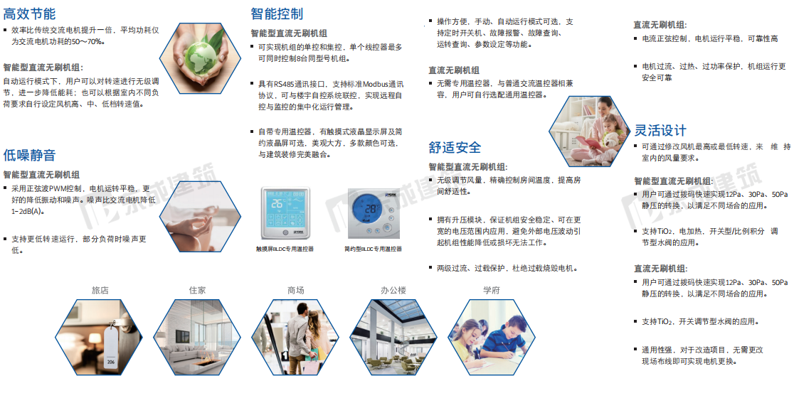 YBFC風(fēng)機(jī)盤管機(jī)組 YBFC系列風(fēng)機(jī)盤管,有吊頂暗裝、立式暗裝兩大系列,每種系列機(jī)型均有2排管、3排管可選,各10個(gè)型號(hào)。標(biāo)準(zhǔn)工況風(fēng)量范圍從180m3 /h到 2380m3/h(高速),供冷范圍量從1.78~12.94kW,供熱范圍從1.63~21.74kW。產(chǎn)品型號(hào)齊全,更好的滿足客戶的不同需求。該產(chǎn)品不僅設(shè)計(jì)嚴(yán)謹(jǐn),制造精心;款式新穎,結(jié)構(gòu)先進(jìn);性能高效,噪省低,耗電少,安全可靠,而且維修安裝方便。 高能效 機(jī)組換熱器采用優(yōu)質(zhì)銅管,配以高效波紋雙曲開窗親水鋁翅片,運(yùn)用先進(jìn)的機(jī)械無伸縮漲管工藝,換熱效率高。配以大風(fēng)量低噪聲風(fēng)機(jī)強(qiáng)化傳熱,使機(jī)組發(fā)揮最大的傳熱效能。 低噪聲 機(jī)組均經(jīng)過匹配優(yōu)化,風(fēng)機(jī)經(jīng)過逐一校驗(yàn),確保機(jī)組寧靜高效地工作。 無凝露 機(jī)組凝結(jié)水盤為整體沖壓一次成型,無焊縫、焊點(diǎn);難燃型保溫材料整體粘貼于水盤,杜絕滴漏水和凝露的現(xiàn)象。 安裝簡單 立式暗裝風(fēng)機(jī)盤管機(jī)組可靠墻安裝在窗臺(tái)下,客戶可根據(jù)自己的喜好來裝修房間,既舒適又美觀。 維護(hù)方便 電機(jī)采用進(jìn)口高精度優(yōu)質(zhì)滾珠軸承,無須加油,自行潤滑,噪聲低,壽命長。電機(jī)中心軸均經(jīng)調(diào)質(zhì)和表面防腐蝕處理,經(jīng)久耐用。 靈活應(yīng)用 提供多種選項(xiàng),滿足客戶的不同需求。 品質(zhì)保證 YBFC系列風(fēng)機(jī)盤管通過美國空調(diào)制冷協(xié)會(huì)AHRI認(rèn)證。 |
